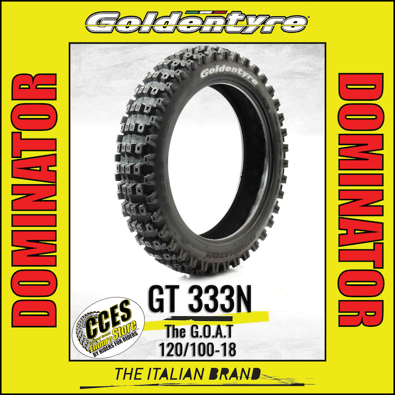 The GoldenTyre GT333 120/100-18 “Dominator” is a race-developed enduro rear tyre engineered for demanding off-road riding and competitive terrain conditions. Designed to deliver strong forward drive and controlled traction, this 18 inch rear tyre performs consistently across hardpack, rocky sections, loose dirt and mixed trail environments. It is built for riders who demand reliable rear-wheel performance under acceleration and braking load.