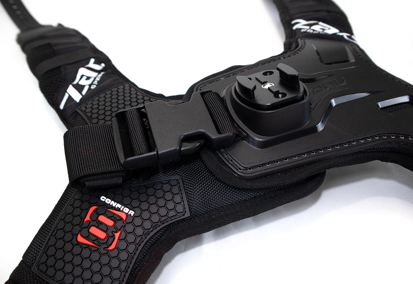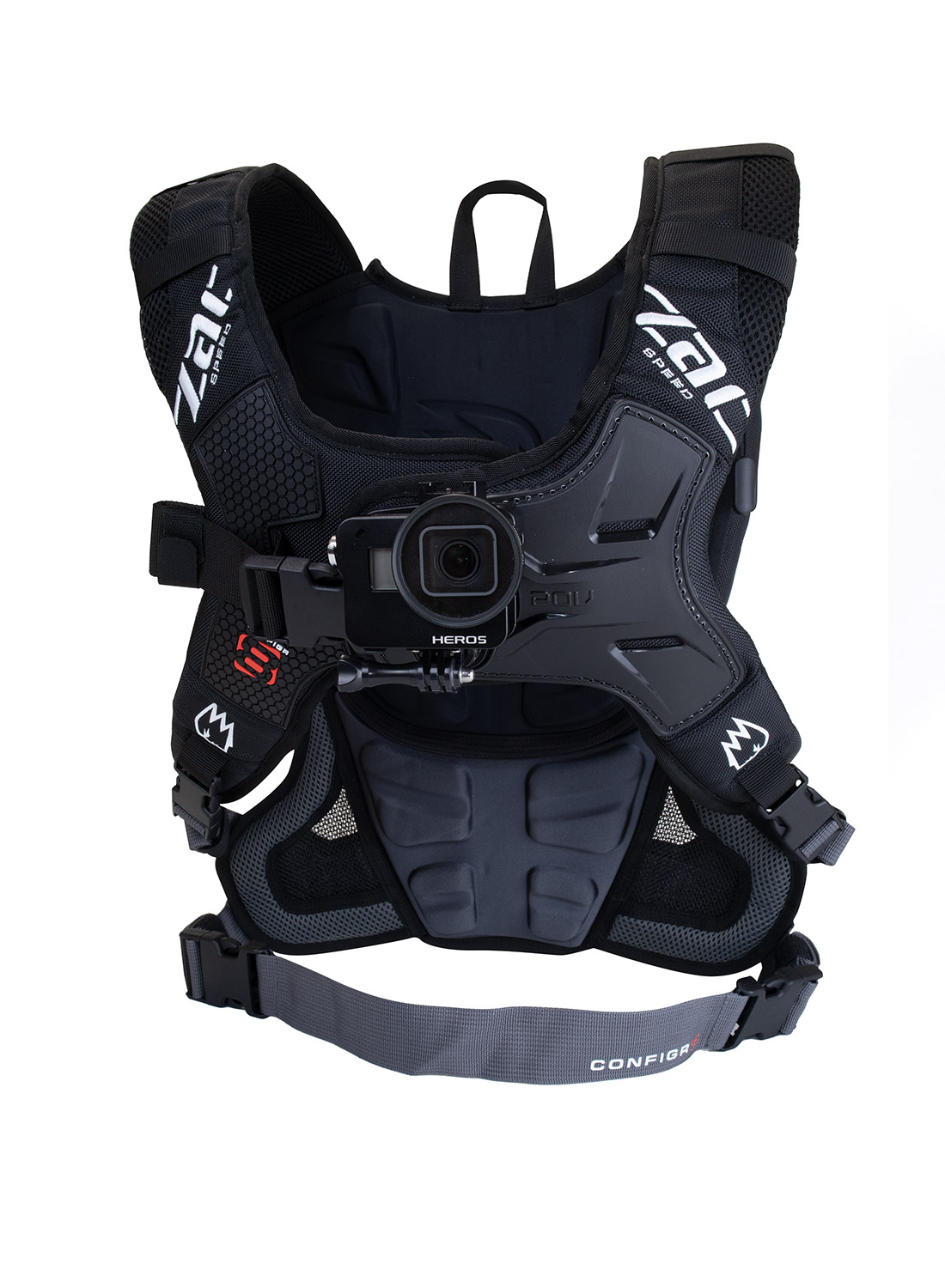 The Zac Speed POV Harness is a replacement harness designed to integrate directly with Zac Speed hydration packs as part of the CONFIGR8 modular system. It features a front-mounted camera platform that allows riders to capture stable point-of-view footage while riding.